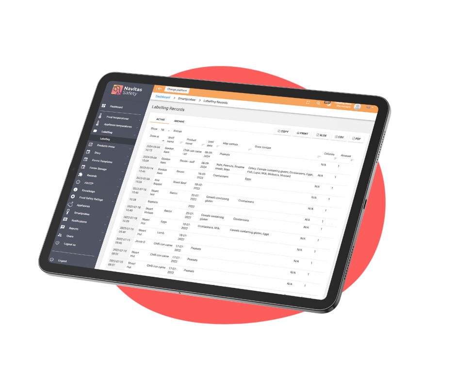 Staff accountability means you can see who printed what and when, with all records and allergen data stored for total accuracy.